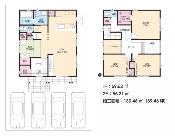 玄関やウォークイン・小屋裏収納と収納量も抜群です。