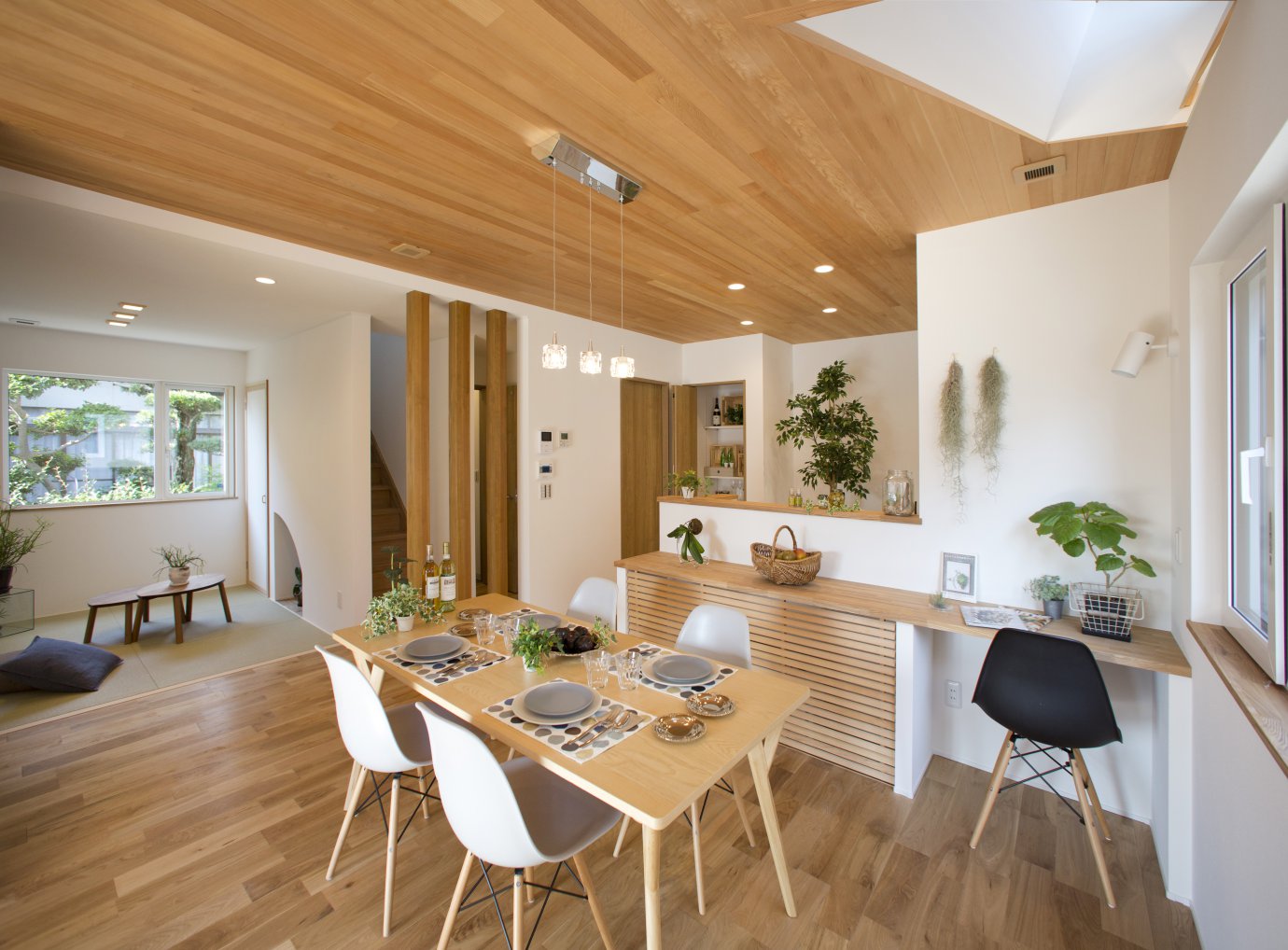 天井にも無垢の木をはって雰囲気も落ち着いたおしゃれ空間に。
