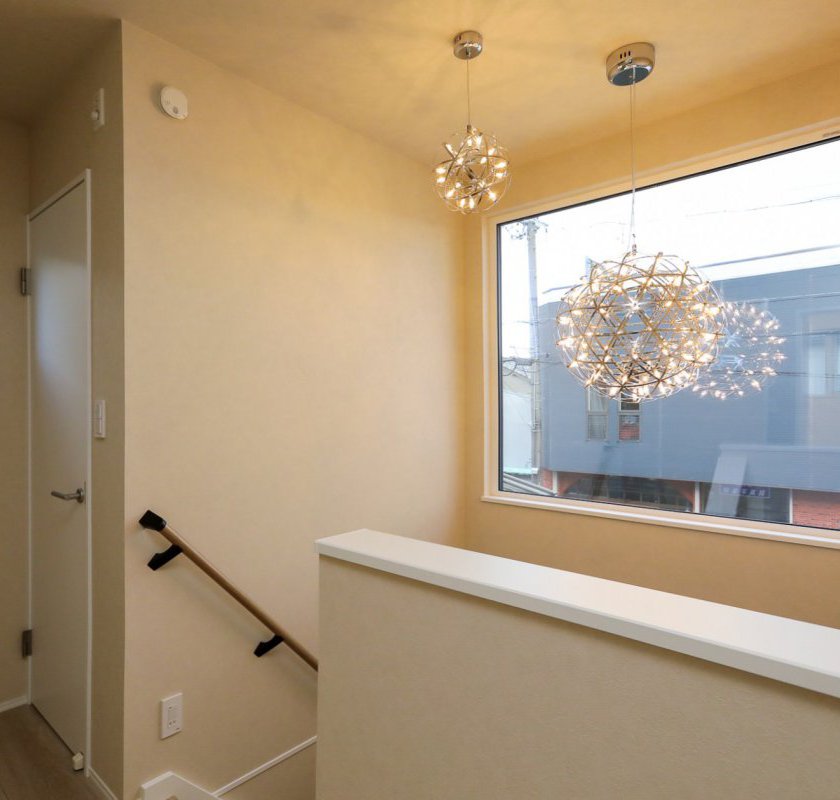 階段の上の照明です!ミリ単位で調節してもらいました。