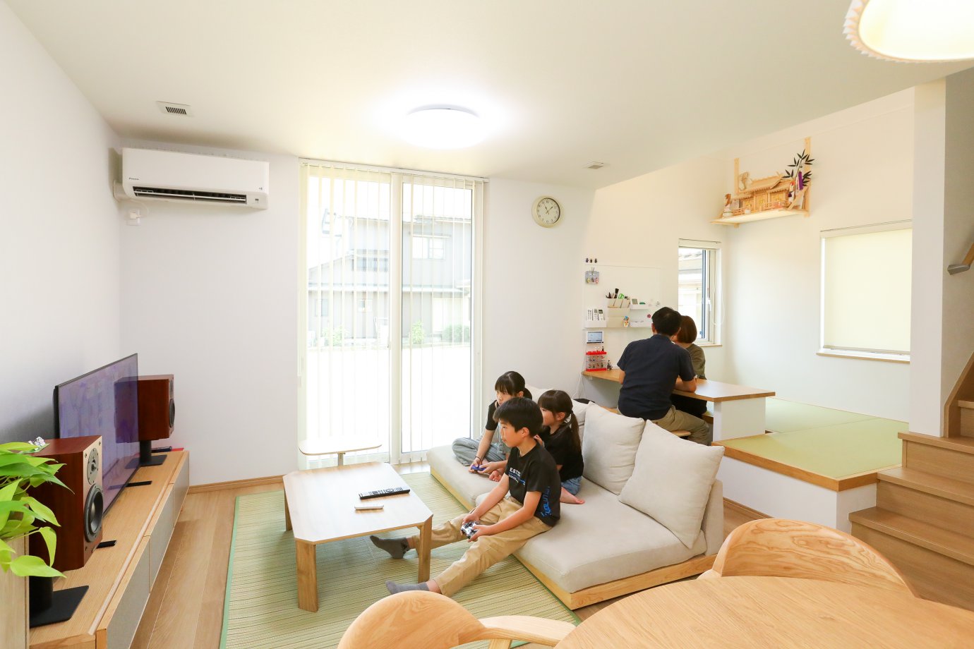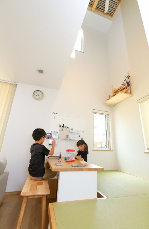 特に気に入っているのは、小上がりの畳コーナー。食事中やくつろいでいる時にも、そこにいる子どもの様子がよく見えて安心感があります。友達が遊びに来た際も、自然と畳のスペースに集まり、楽しい交流の場になっています。